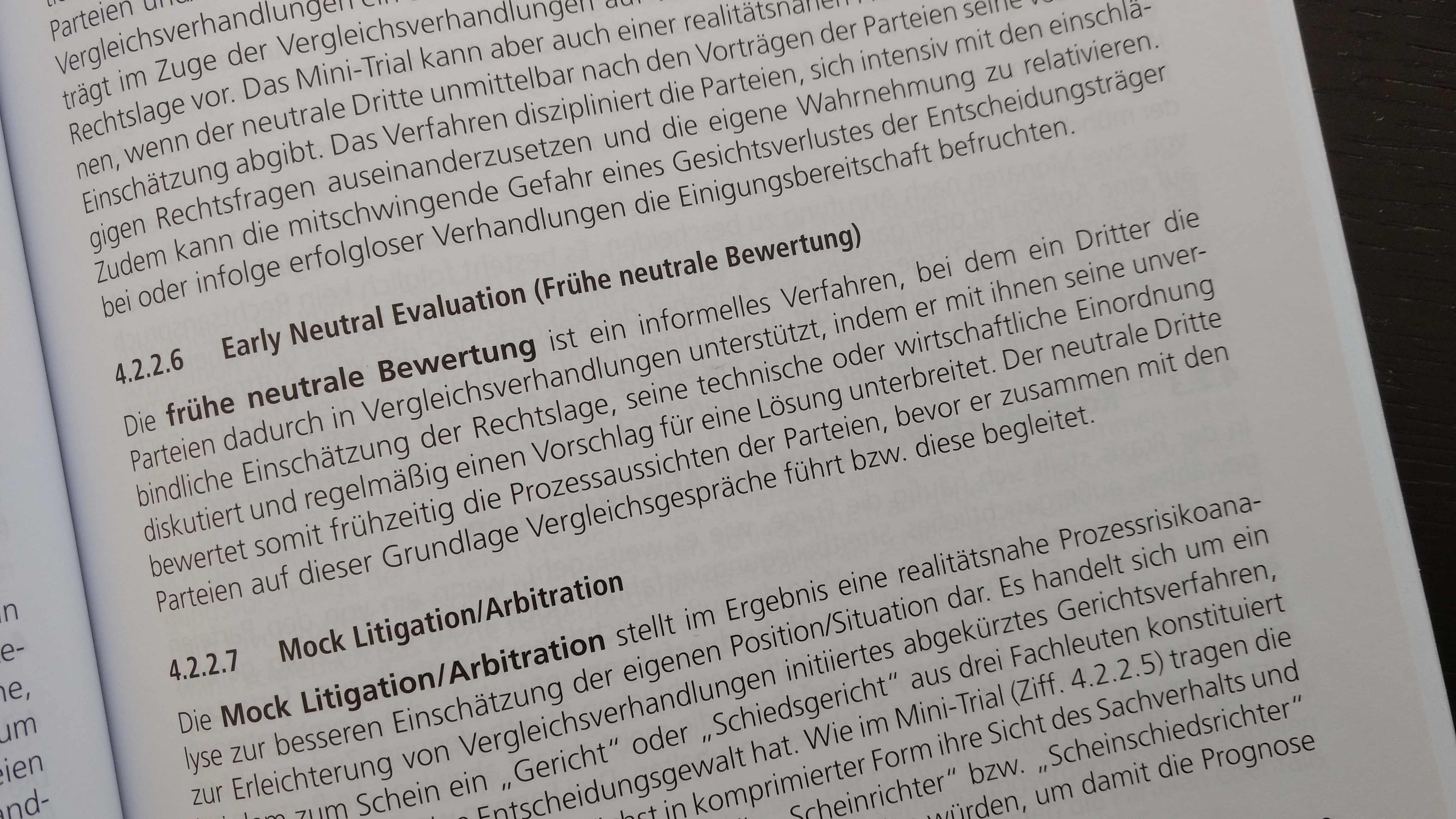 Aus meiner Sicht stellt die ebenfalls in Heft 37 erläuterte „Frühe Neutrale Bewertung“ eine niederschwellige Einstiegsvariante in die außergerichtliche Streitbeilegung dar: