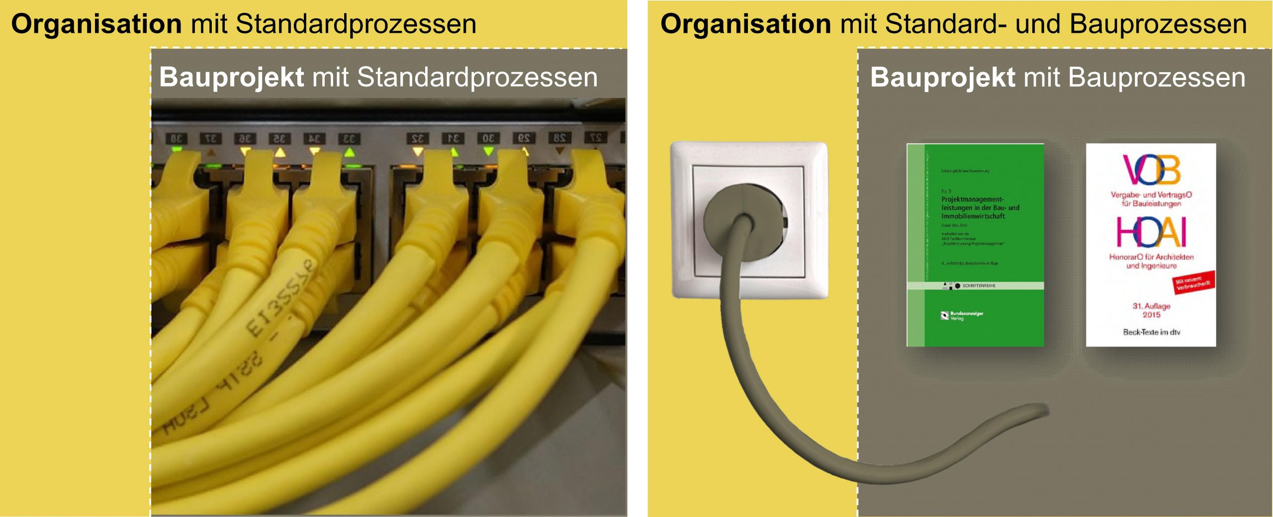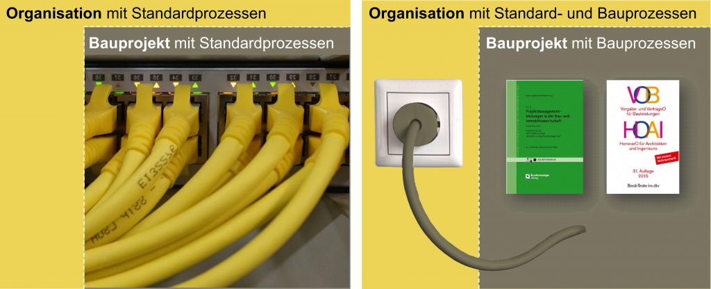 Dieses Angebot richtet sich sowohl an große Bauherren mit ihren Organisations-Anforderungen, als auch an Einmal-Bauherren, die eine temporäre Organisation aufstellen müssen.