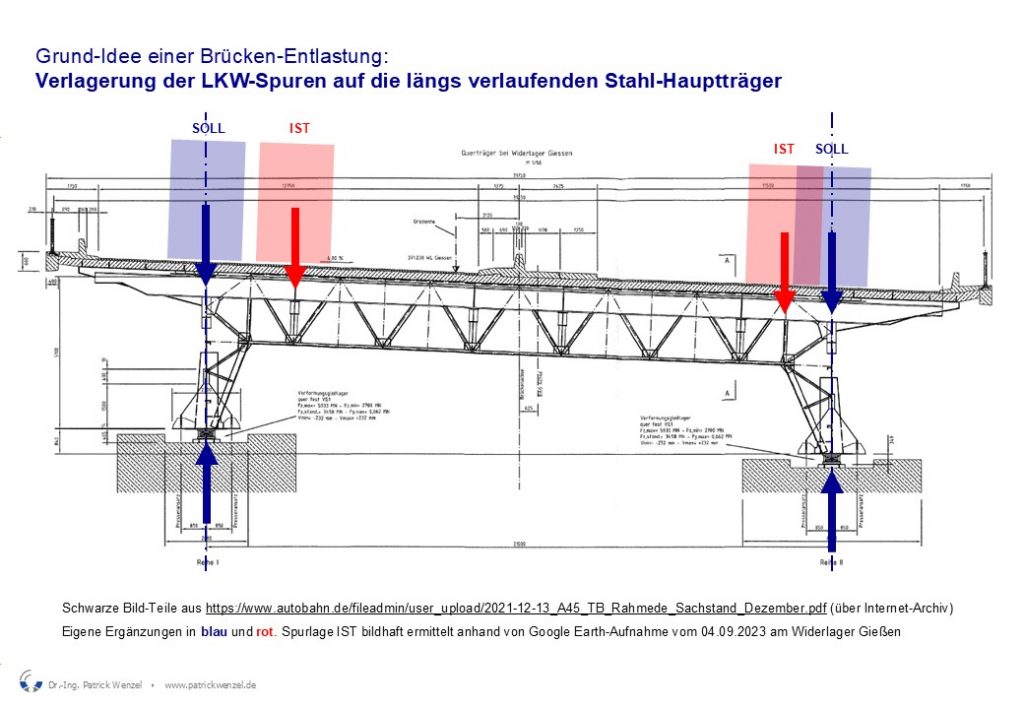 So hat der WDR bei der Talbrücke Rahmede herausgefunden, dass Brückenprüfungen bereits 2014 ergeben hätten, dass die LKW-Fahrspuren mittig über die beiden (je Richtungsfahrbahn unterseitig längs verlaufenden) stählernen Hauptträger verlegt werden müssen, um die Brücke zu entlasten. 2021 hat sich dann herausgestellt, dass die verlegten Spuren diese Achsen oberseitig nicht „getroffen“ haben. Dadurch wurde die Brücke weiter bis zu dem Punkt geschwächt, an dem sie schließlich unplanmäßig gesperrt und gesprengt werden musste. Aktuell arbeitet der Landtag NRW diesen schweren Fehler in einem Parlamentarischen Untersuchungsausschuss auf.